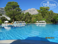 Питание. Хорошее. Не буду повторяться, очень много о нем написано, жевать можно с раннего утра и до позднего вечера. Некоторым не нравится, что пища больше смахивает на домашнюю, без особых изысков, так по мне это не минус, а плюс. Главное, чтобы она была качественной. Здесь было что выбрать для наших российских желудков, при этом еды вкусной и разной, и это радовало. Что толку, когда подают экзотику, которую есть невозможно, во рту горит. Раз попробуешь, а потом идешь и ешь ту же курицу. Проходили и такое. Но не здесь. По ассортименту повторяться не буду, написано оч. много. Здесь почти не нарывались на острую пищу, еще бы нашего супчика и вообще красота. Фруктов поели очень много разных и вкусных. Вот только дыня была никакая. Зато апельсины и грейпфруты на завтрак подавали уже очищенные и порезанные. Гезлеме брали раза три, просто, чтобы попробовать, каково оно здесь с разными начинками. Что касается очереди к Розе, то эти посиделки у нее превращались в очень даже интересное общение с другими постояльцами, делились своим туристическим опытом - довольно полезное занятие. Правда, я всего один раз ждала минут 20, в другие дни, благодаря тому, что загорали на поляне, ждали совсем недолго. Айран был всегда, за редким исключением, если не в холодильнике, то в снек-баре. Что не понравилось, так это много мух в снек-баре. Персоналу как-то надо с ними бороться. Если нарезка сыров и колбас там прикрыта пленкой (которую, кстати, сами гости часто не закрывают после того, как возьмут продукты), то фрукты не накрыты ничем. Приходится все фрукты снова споласкивать водой из бутылок, а вот с арбузом сложнее. Старались брать только когда приносили свежую нарезку, опять же видно с поляны :))). В снек-баре перекусить можно, выпить кофе по–турецки. Мы там не питались. Приходили в ресторан утром к началу завтрака (вставали рано), в обед и ужин старались не спешить, минут через 40-60 после начала, столы уже освобождались. Официанты работают в основном на уборку грязной посуды и накрывают столы. Напитками себя снабжали сами. Ничего страшного, справлялись... Блюда всегда пополнялись. Раза два, правда, пришлось сказать персоналу, чтоб принесли что-то, выполнили моментально. Надо отметить, что ажиотажа при открытии ресторана не наблюдалось, никто в него не ломился. В день отъезда пришлось прийти именно к началу обеда, т.к. уезжали в 14.00, так минут 20 ресторан был заполнен всего наполовину. По напиткам я не спец. Пили иногда пиво, понравилось. Пару раз заказывали коньяк, нормальный. Вот с соками там слабо. Днем в обед брали только томатный из тетра-пака, остальные из автомата…не соки… Утром апельсиновый, вкусный, натуральный, но не свежевыжатый. Такой же в прошлом году был и в отеле Белека. Видимо, все отели выдают его за фреш.