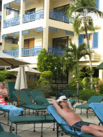 Как и ожидалось в данном отеле нет пляжа, хоть и стоит он в 10 метрах от океана. Вдоль входа идет автомобильная дорога, но движение по ней крайне неспешное, а параллельно вдоль океана идет пешеходная дорожка вдоль которой вечером полно рыболовов и просто отдыхающих местных жителей. Так же к вечеру приезжают уличные торговцы с едой (макашницы) и сувенирами.