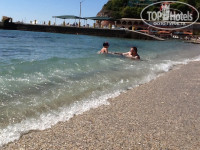 Пляж- мелкая галька и местами песок. Немного напрягали валуны в линии прибоя, но это мелочи. Ребенку было где плескаться и нам поплавать, из моря почти не выходили t ' воды в 11 утра 28'- прелесть.