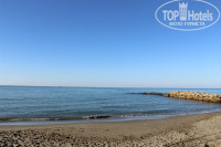 В основном все время проводили на море. Пляж большой, чистый, песчаный с небольшим количеством гальки. Мы были в зоне между пирсом и каменным пирсом. В море попадаются большие валуны. Море чистое, мусора нет, мутноватое от поднятого песка. Несколько дней море было спокойным и вода была прозрачная, дно и рыб было видно на большой глубине без всяких масок. Вода в море теплая, теплее чем в бассейнах.