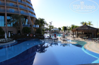 4. Море, пляж, бассейны. В отеле много бассейнов, но вода в них холодная, особенно в детском бассейне, где аквапарк для малышей с ведром. Мы купались пару раз в 2х бассейнах с подогревом: 1. Где выдают полотенца с баром под водопадом, 2й – детский пиратский корабль за аквапарком.