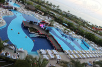 2. Отель и номер. В Отеле были в 11 утра, сказали подождать, надели браслеты. Мы пошли позавтракали, переоделись, искупались в бассейне, погуляли по территории. В номер заселили в 13.00. У нас был оплачен номер с видом на море, такой и дали в блоке В на 3м этаже. Номер небольшой, все необходимое есть. Свет, сантехника, кондиционер – все работало исправно. По запросу на ресепшн принесли для ребенка кровать-манеж, детский матрац и постельное белье. Убирали каждый день, но поскольку время часто совпадало с дневным сном ребенка в нашем номере получалось убирать через день. Чаевые в виде 1$ оставляли пару раз, на качество уборки не влияет. Один раз оставили 2$ - скрутили лебедя. И днем и ночью до 12ти в номере слышно музыку из баров, ночную дискотеку, так что кому нужна тишина – это не вариант заселения. Но нам и нашему ребенку это не мешало, даже был плюс – гала ночь проходила под окном и всю программу смотрели с балкона как в ВИП-ложе))), а не в толпе внизу. Обслуживание в номер платное, причем цены не низкие, хотя стоит предупреждение, что в целях ГИГИЕНЫ проносить еду и напитки в номер запрещено. Но народ носил еду, персонал не останавливал и никаких санкций не применял.