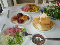 - утром завтрак с 7.30 и до 10 - на завтрак особого разнообразия нет - яйца вареные, тушенные овощи, салаты, колбаса(правда только одного вида), сухой завтрак, молоко,чай, кофе, какао, батон, масло, варенье разных виидов, пекут что-то типо пончиков и может ещё что-то я упустила. Но знаете выбрать что бы перекусить до обеда можно было, и мы впринципе никогда голодными на завтраке не оставались. Мы обычно поднимались в 8 часов, собирались и шли кушать и всегда была еда, если вдруг не было колбаски либо ещё чего-нибудь то всегда можно было сказать им и они приносили.
