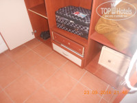 Подробнее о номере: Пол в номере в кафеле, с белыми разводами (по-видимому от морской воды), на балконной двери разводы от зеленки, они же на шторах. Также ржавые подтеки с потолка до пола через всю стену. Кровати как таковой нет, есть два матраца сложенных друг на друга, нижний в чудовищном состоянии. Шкаф в прихожей сломанный. И самое интересное, душевая комната – пляжная галька от предыдущих туристов была раскидана по углам, также не убрано мыло, в душевой сливное отверстие, даже ничем не закрыто (одним словом дыра), дверь облезлая от сырости. Горячей воды в первые дни не было, потом появилась, но отрегулировать ее в душе было не возможно (либо холодная, либо горячая). В общем тихий ужас. За пять дней ни разу не прибрались, полотенца не меняли, а про постельное белье вообще говорить нечего (на официальном сайте данного отеля – прибираются каждый день, полотенца меняют через день, а постельное – через три дня). Кстати полотенца дырявые, а простынь была составная из двух.