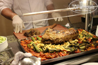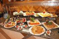 По поводу еды 5++++++, повара молодцы! В ресторане бывали рыбные дни, были креветки, кальмары, осьминожки, разные виды рыб. Всегда на ужине есть говядина, курица, баранина. Мяса очень много. С фруктами было туго - не сезон. Мороженое всегда было после ужина. Официанты приносят напиток, который вы у них попросите (газ.вода,вино, пиво). По питанию претензий нет, после отдыха мы набрали по паре килограмм).