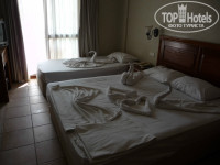 Отдыхали в этом отеле с 11-23 октября 2014 года с друзьями. Из аэропорта приехали где-то к началу обеда, к 12-ти. Быстро оформились, пообедали и быстро заселились. Ну конечно мы не забыли заранее поблагодарить, вложив в паспорт 20$ :) И это нормально)) Заселили нас в 6 номер на 4-м этаже, с видом на море и на территорию отеля. Номер небольшой, но нас вполне устроил. Холодильник, телевизор, сейф - всё это в нём было. В общем, мы были довольны.