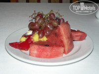 Про еду в отеле можно петь песни. Для Египта - просто супер! Каждый вечер что-нибудь вкусное и оригинальное. В достатке мясо, рыба, птица. Великолепная выпечка. Десерты - искушение для живота. Много фруктов: арбузы, дыни, яблоки разные, груши разные, виноград, финики, грейпфруты, апельсины. Инжир в форме корзиночек, груши в карамели. Вечером вкуснейшие десерты в фужерчиках!Огромное спасибо смотрителю на десертах и фруктах - очаровательная улыбка и доброжелательность. В отеле вообще все доброжелательны, все здороваются и улыбаются.Очень приятно. Никакой дискриминации! И еще приятно отметить, если вы взяли десерт, кофе, фрукты и вышли на улицу и там, слушая музыку это употребляете, то никто не будет вас хватать за руку. А еще и предложать принести кофе, коктейль.