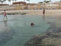 Ну и о самой большой проблеме отеля - море. Там находятся два отеля рядом, одного хозяина. 4-ка и 5-ка. Наш, пятерка, своего моря как такового не имеет!!! Пляж отличный, в два этажа. Но на нем можно только загорать. А вот чтобы окунуться (не плавать, как в бассейне), нужно идти несколько пролетов вверх, затем через ресторан, потом вниз и далее по пляжу уже четверки. У них есть в рифе лагунка глубиной по шейку, где все и окунаются. Плавать невозможно! Внизу и рядом - кораллы. Ободраться легко. Многие там обдираются. Вход тоже через риф. Смотрите внимательно фотографии!!! Но рыбки плавают вокруг. В других лагунках, уж совсем малюсеньких, туда и не войти, тоже плавают рыбки. Вот так все и ходят по рифу, смотрят сверху на рыбок, которые попадают туда во время прилива. Первые пять дней из 10 дул ОЧЕНЬ сильный ветер, волны были очень большие и висел черный флаг. Купаться даже в лагунке было не комфортно, холодно. На шестой выпустили в море часа на два. Кто успел, то и поплавал. Потом три дня флаг был желтый, волны были, но купаться за пантоном разрешали. Нам есть с чем сравнить и честно можем сказать: если хотите поплавать с удовольствием, спокойно. И при этом насладиться Красным морем, его рифами и рыбками, то вам тут делать нечего! И с детьми делать нечего. Для них нет ничего, кроме мелкого бассейна и вечерней анимации. В море детям купаться невозможно, нет песчаного входа и дна. Мамашки все жаловались. Народ ездил на экскурсии и ходил нелегально купаться в другие отели. И если в ветренные дни, мы, пятерошники, занимали крайние лежаки на пляже четверки, то с открытием купания, нас попросили удалиться на свой пляж. А бегать постоянно по ступеням туда-сюда, чтобы поплавать за пантоном (он общий для обоих отелей) или побарахтаться в их лагуне, удовольствие сомнительное. Особенно для туристов с детьми и возрастных. Правда можно похудеть, но ехали-то в море купаться, а не по ступеням бегать. Можно еще прямо по рифу ходить.