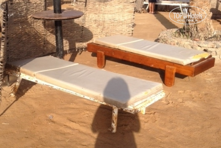 2. Лежаки на пляже. Это отдельная история. Грязные рваные матрасы. Лежаки деревянные или ржавые металлические. К ним страшно подходить. Полотенца примерно такого же уровня.(фото прилагаю)