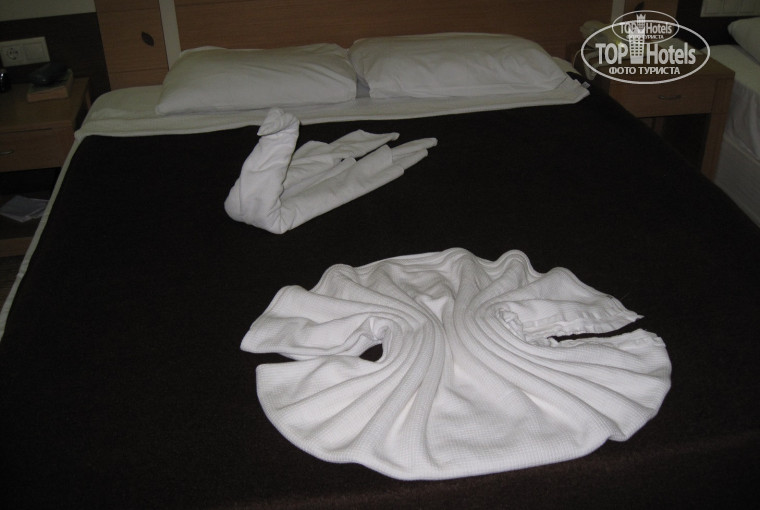 С номером нам повезло. Последний этаж. С роскошным видом на море и, сверкающую золотым поясом, Анталию. Номер чистый. Никаких замечаний по работе оборудования не было. Единственный вопрос с заменой лампы в напольном торшере был решен в течение 10 минут после звонка на ресепшн. Уборку в номере хотелось бы особенно отметить. Есть опыт пребывания в разных отелях, в т.ч. и в пятизвездочных. Но так тщательно у нас не убирали нигде. Каждый день, независимо от наличия чаевых, вытирали пыль на столе, тумбочках, аппаратуре. Пылесосился ковролин. Ежедневно менялось постельное белье, полотенца для лица и банные. Проводилась влажная уборка ванной комнаты, где не упускались малейшие детали (в т.ч. натирались до зеркального блеска все краны!). Мыли балкон.