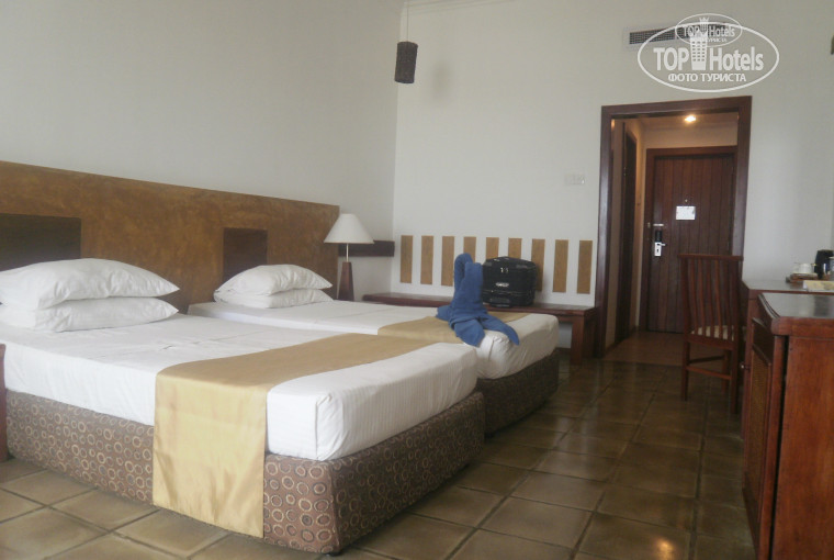 Много писать не буду. В общем отель производит хорошее впечатление. Он не новый но чистенький и уютненький. Приветливый обслуживающий персонал, все улыбаются, здороваются. Но были и неприятные моменты. Как уже читала в отзывах про сейф - ходила 3 раза, чтобы мне его открыли. По пляжу ходили менеджеры с ресепшена и собирали ... деньги для бедных и больных ланкийцев. Ну и наконец, хочется сказать особо про старшего менеджера с ресепшена - Гишилу, беспредельно наглая и самодовольная особа. Когда мне сообщили, что меня из отеля заберут в 16-30, хотя мой самолет в 1-40 вылет, я попросила позвонить моему гиду - она запросила деньги, на что я ответила категорично "нет" и тут я увидела надменность ее и ухмылки, типа разбирайся как хочешь. Тогда я попробовала подойти к др. менеджеру и тот сразу понял, что какая-то нестыковка. А оказалось просто, она ошиблась, эта Гишила, и вместо 9-30, написала 4-30. Но не извинилась, а сказала, что мне надо доплатить за номер, т.к. выселение в 12-00 дня. Туроператор не продумал этот момент и нас не предупредил. В 12-00 нас из отеля выселяют, а забирают из отеля в 21-00. Как хочешь, так и выкручивайся. Я доплатила 75$, чтобы до 20-00 быть в номере. Опять накладка - ко мне в этот день не пришли ни убираться, не принесли ни чай, ни кофе, пока я не сходила на ресепшен. Конечно же последний день смазал впечатление об отеле, но написала для вас, кто поедет сюда.