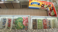 Выбор спиртных напитков, международных, брендов, достаточно высокий, большое количество выбора фирменного мороженного в упаковке в холодильниках с свободным доступом, прохладительные напитки (не алкоголь) в аква-парке в холодильниках с стеклянными дверями, в стекле , в свободным доступе.