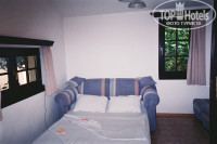 Да, есть. На моем фото имеются обе комнаты, размеры каждой мне кажется не менее 12 м кв, т.е. очень просторно. С террасы вход в гостиную (стол с телевизором остался за кадром). Налево - вход в спальню, рядом вход в ванную -туалет, не менее 8-10 м кв. Полы в гостиной из плитки, в спальне - ковролин. Кондиционер расположен над входом в ванную.