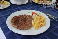 Бронировали апартаменты заранее, за полтора месяца, на сайте bonissa.net/apartamenty-na-plyazhe-yaz. Для мобильного передвижения по стране брали в прокат машину на 9 дней, поэтому удаленность от населенных пунктов (5 км до Будвы) нас не тревожила. В принципе условия проживания нас вполне устроили. Были, конечно, и минусы, ну так куда без них. В аэропорту Тивата нас радушно встретили и через 20 минут мы были уже в номере. Номер скромный, на 2-ом этаже. Все необходимое было, и самое важное для нас – наличие мини-кухни и кухонные принадлежности. По нашей просьбе принесли и утюг. Фен брали с собой. Готовить в Черногории одно удовольствие – в 15-20 минутах ходьбы есть супермаркет, в котором мы покупали продукты: мясные полуфабрикаты, пршут, сыры, овощи, фрукты и прочее. Надо сказать, что, еда в Черногории простая и понятная, никакой химии и аллергенов, одним словом «ecological food». Очень понравилась национальная кухня, особенно чевапчичи, это такие колбаски из рубленного мяса; плескавица – похожа на чевапчичи, только в виде нереально большой котлеты. Купленное мясо нам жарили бесплатно на углях возле магазина, что бесспорно очень удобно, быстро и вкусно. Завтракали и ужинали мы, в основном, на прекрасной большой лоджии, обвитой цветущей бугенвиллеей. А вот вид с лоджии не очень, хоть и на море. Под окном располагаются летние открытые кафешки, сколоченные наспех, и их крыши загораживают и портят весь вид. Кроме того, они работают до последнего посетителя, и по ночам бывает ну очень шумно. Так что в данном случае вид на море сомнительное удовольствие. Приходилось закрывать окно и включать шумный кондиционер. Постельное белье меняли раз в пять дней, полотенца – раз в три дня. В номере не убирают – все принадлежности для самостоятельной уборки стоят в холле.