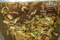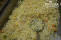 4. Еда на завтрак потрясающая. Рис отварной, рис жаренный с горохом, рис под водой - "Суп" и сухая поджаренная свинина + сосиска и жаренное яйцо. См. фото! Это меню будет повторятся КАЖДЫЙ ДЕНЬ! Без вариантов. Забыл о фруктах - выбор беспрецедентный!!! Арбуз и ананас. Одна проблема. Живут в казарме в основном русские и сезон арбузов закончился недавно, а сезон ананасов наступил прямо в столовой. Нередко я наблюдал как люди с жадностью, толкаясь, нагребают полные тарелки ананасов, используя при этом не только специальные щипцы, а не брезгуют хватать их просто руками. Общее блюдо пустеет при этом за считанные секунды. Довольные соотечественники победно восседают за обшарпанными столиками за частую не догадываясь, что доесть этот трофей сил может не хватить , а выносить с собой не комильфо. Впервые в жизни в охладителе для сока, заляпанном жёлтыми пятнами я обнаружил просто воду, а не сок юппи/зукко.