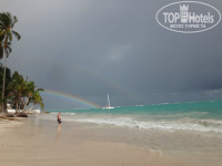 Итак, начну с того, что рекомендую отель и отдых в Доминикане в целом. Такой долгий перелет все таки того стоит. Отель рекомендую молодым людям, парам, поскольку сама атмосфера в отеле для очень веселых и молодых людей. 80 % - это парочки, которые постоянно ходят за ручки и целуются, семей с детками очень мало, пожилых ничтожно мало. Русских наверное процентов 15. Сама атмосфера Доминиканы располагает к романтике, там очень много прекрасных природных явлений. Рассвет над Атлантикой, просто чудо, ходили и мужем и встречали рассвет, так как вставали в 6 утра, потом полнолуние, луна висит прям над океаном, широкая лунная дорожка просто очень красиво. В это время как раз в полнолуние мы заказывали романтический ужин на берегу с омарами и шампанским. После дождя радуга, которая стремится к горизонту. Океан красивого лазурного цвета, песок белый и мелкий как мука.Отель находится в Баваро, близко к аэропорту.