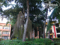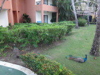 Территория отеля большая, очень ухоженная и зеленая. Три или четыре бассейна, в них даже не заходили, фонтаны, качели, по территории гуляют павлины. Персонал постоянно моет дорожки с моющими средствами, ухаживают и содержат территорию в чистоте.