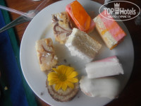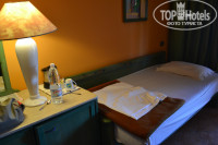Номер – дали нам корпус А №102 –это в самом конце корпуса. Всякий раз мы вздыхали, когда обходили лагуну, причитая, что не построили мостик с одного берега на другой. Номер большой, нас было 4 человека, у всех отдельные кровати. Холодильник каждый день пополнялся пепси и спрайтом в стеклянных бутылках (0,25)по 2 штуки и питьевая вода по 2бутылки (1л). В номере был чайник, сахар, сухие сливки, кофе. Комплимент от отеля корзинка фруктов, бутылка красного вина. Перед рождеством для детей дали домик, сделанный из шоколада. Было очень приятно. В ванне положили маленькую шампуньку, кондиционер, гель для душа, мыло, бритвенный станок, крем для бритья и шапочку для душа. Номер убирали не очень чисто, песок на полу был все 12 дней. Выносили мусор и заправляли кровати.