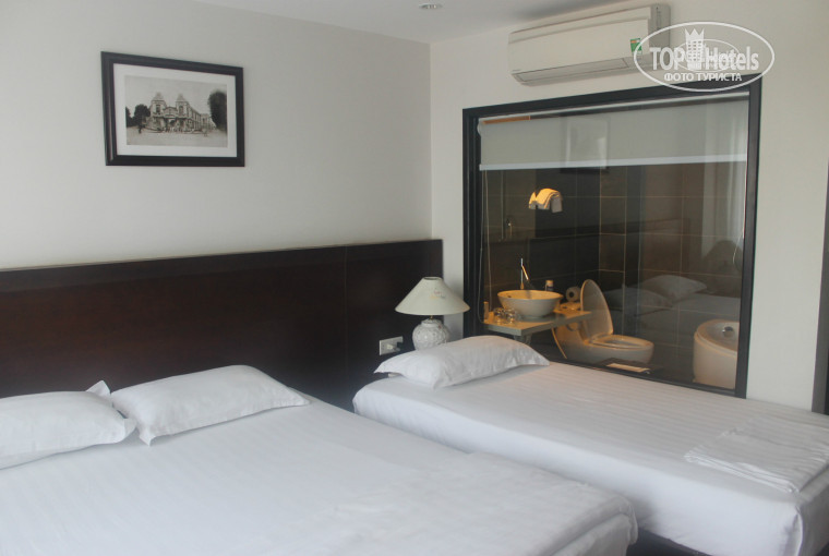 Номер не большой, но втроем разместились, даже с комфортом. Описание номера соответствует тому, что обещал туроператор. Очень часто туристы задают вопросы про третью кровать - это огромная комфортная раскладушка. Огромное окно в ванную для нас так же осталось загадкой - зачем??? Не хватает шторки для ванны, но это можно пережить. В номере есть небольшой балкон (один на два номера). В соседнем номере часто менялись постояльцы, но мы с ними ни разу не пересеклись. На балконе сушили одежду (как практичные руссо туристо привезли с собой веревочку). В общем номер понравился!