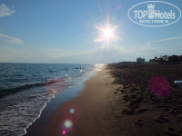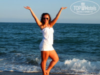 Море обалденное, чистое, бирюзовое, вода расслаивается - вверху прохладнее, ниже - кипяток, т.к. рядом водопад и три родника (один в сторону водопада между большими камнями, второй бьет из под платформы(ее остатков) и третий капает со скалы во противоположной от водопада стороне). Вода прям обволакивает, классно до 11-00 - идеальное время для плавания волн нет, потом приплывают лодки, яхты и иногда поднимаются волны и поднимало водоросли со дна (а берутся они все с речки Дюден), но мы как-то сделали мяч из водорослей и кидались друг в друга))) Вечером тоже хорошо плавать, но темнеет рано, т.к. скала высокая( Нам отельный гид предлагал всего за 75 $(!) на яхте приплыть к водопаду... А мы просто на матрасе туда сплавали. Это очень круто, что отель рядом с водопадом)))) И пляж такой закрытый, миниатюрный, лично Ваш)))