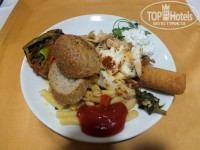 Если коротко: немного, но КАЧЕСТВЕННО и вкусно! Да, на завтраках был действительно небольшой выбор, но все очень вкусно: разные сорта свежайших оливок (черные объедение), 4 сорта сыра, 2 вида колбасы, шоколадная паста (просто куча!), кофе, чай, соки (вкусные и натуральные в отличие от тех, что в all inclusive), слойки с творогом, яйца, сосиски, жаренные баклажаны, перцы, зелень, варенье, хлопья. На ужинах еще больше разнообразия, но очень не хватало напитков, запивали огурцами и арбузами)))))Свою еду и напитки без палева проносите! На обед просто пили)) или ели фрукты. Иногда покупали Durum за 5 лир на улице где Мигрос за банком Garanty ( в оторый ни в коем случае не ходите за обменом - возьмете талон на очередь и просидите целый час, т.к. в первую очередь они обслуживают клиентов банка/держателей карт, а их нескончаемый поток). Лучше идите в Halk Bank - быстро и нормальный курс. В банкоматах DenizBank можно без комиссий снять наличку со сбербанковских карт.