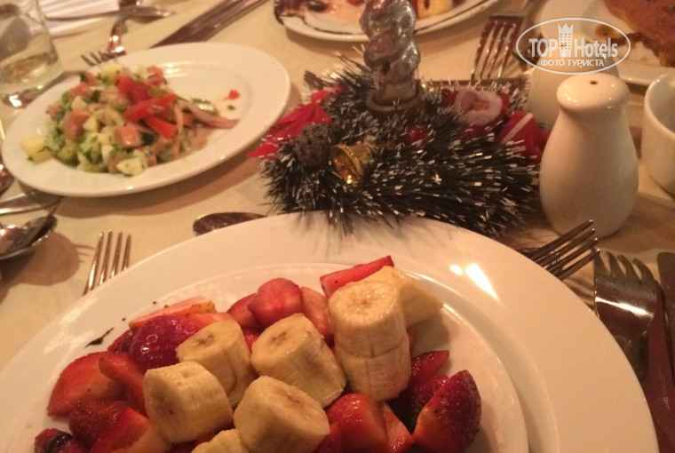 В новый год и рождество выбор поражает: баранина, говядина, креветки, крабы, роллы, разные гарниры. Различные фрукты, десерты. Развлекали местные аниматоры и народный фольклор, танец живота.