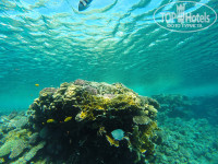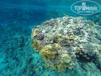 Отличный песочный пляж с баром и лежаками! Мест нам хватало. От номера до пляжа добирались за 53 секунды! Есть пантон для ныряния) ОЧЕНЬ хороший риф. Есть на что посмотреть!