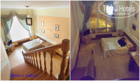 Мебель очень старая, в номере, возле лестницы стоит диван, который видимо выкинули из квартиры, а хозяйка гостиницы решила его пристроить в полулюкс. Под лестницей на тумбе стоит холодильник пустой, в номере вода не предусмотрена, видели только кулер на 4-ом этаже. Вообще, что в нашем номере, что у наших коллег, много мебели совсем не нужной и бесполезной.