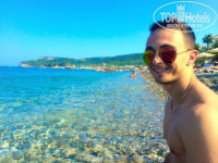 Пляж: Собственного пляжа как такого нет, но возит автобус на пляж где одно место 1$, лежаки матрасы и зонтики.Пляж песчано галечный, есть пирс и кафе. Но мы там были только один раз. Мы ходили пешком до пляжей минут 10, которые принадлежат отелям или кафешкам, цены у всех разные, мы нашли за 2$ хороший пляж, галька но кристально чистая вода.