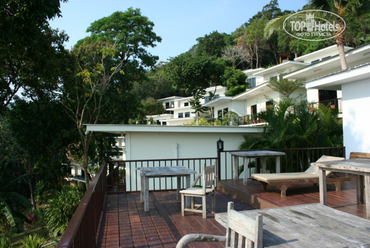 Мы отдыхали семьей в марте 2014г. Отель нам очень понравился именно расположением. То, что домики террасами, то, что расположен на мысе. Мы передвигались на байке и нам было очень удобно, купались на Кароне и Кате, вечером тусовались на Патонге. Красивый небольшой бассейн с открытым взору краем. Наш номер был на самой нижней линии и балкон выходил в лес, который на склоне горы. Вечером и утром можно бесконечно сидеть там и смотреть как падают цветы с дерева, шуршат листики и иногда даже скачут черные белочки по деревьям. Домики на 2 номера, немноголюдно. Номера без излишеств, но все прилично. Кондиционер работает, все остальное тоже устроило - холодильник, телевизор, фен, чайник. Хорошая широкая кровать, для ребенка отдельная односпалка. Убирали каждый день, постель меняли через день, воду приносили, чаевые мы оставляли по 20-30батт. Туалет и душ в хорошем состоянии, чистое, целое все.