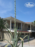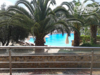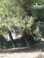 Территория отеля - это бесподобное местечко на берегу моря с пальмами, соснами, какими-то цветущими кустарниками, оливками, променад вдоль моря.