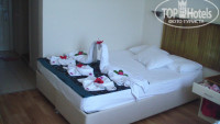 Территория не большая, с маленькими детьми удобно, всё на виду, ребенок под присмотром, но вот прогуляться вечером негде, пришлось уходить из отеля, зелени мало, я всё-таки люблю много зелени. Да и ребенку 7-10 лет не побегать, детская площадка маловата. Окна у нас выходили не на море, а на другую сторону, очень слышно приезжающие автобусы , особенно с утра, пришлось спать все время с кондиционером, кондишены гудели сильно, я очень чутко сплю, и я поняла, что всё таки для меня лучше центральный кондиционер. Так все нормально, убирались, полотенца во время. На ресепшене ребята молодцы, с юмором))) Вай фай работает на ресепшене. В ресторане , конечно, места приходилось занимать , придешь чуть позже-мест тяжело найти, особенно внутри здания, да и блюд некоторых уже не найдешь. Еда вкусная, мне понравились особенно запеченнные перцы, вот ни в одном отеле я такие вкусные не ела, очень вкусно. Фрукты очень быстро расхватывали наши, набирали тарелками и с собой уносили в номера, мне всегда интересно было- когда же они их ели, если и так нас кормят все время?