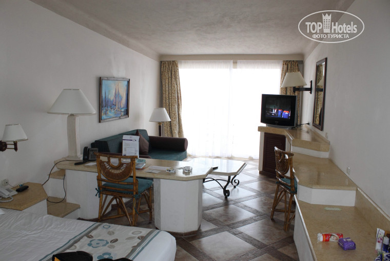 О выборе места отдыха не пожалели. Отель сразу поразил своими архитектурными особенностями и роскошью. Несмотря на то, что мы прибыли около 9.00, после заполнения анкеты и завтрака нас сразу заселили. Номер комфортный, все необходимое в нем имелось, бесплатный бар (кола, фанта, спрайт, вода – пополнялись ежедневно), сейф, набор для кофе и чая, все работало. Постель и полотенца менялись ежедневно. Уборка номера проводилась качественно независимо от того, оставлялись чаевые или нет. Из окна и террасы номера отличный вид на море.