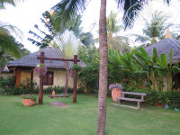 Мы жили в бунгало 614. Маленькое, но уютное. Место вполне достаточно для двоих. Места под одежду тоже. Кондиционер плюс вентилятор под потолком. В тумбе под телевизором маленький холодильник. Реле температуры холодильника мы ставили на 5-6, чтобы охладить пиво и вино. Через день нам приносили тарелку с фруктами. И мы обратили внимание, что после этого у нас реле стояло на 1-2!!!! Т.е. они ставили фрукты и уменьшали, точнее увеличивали, температуру в холодильнике. Так что обратите на это внимание! Уборка номера каждый день, причем очень тщательная! Один номер убирают не меньше часа. Вытирали каждый раз даже двери шкафа и стекло входной двери! Смена полотенец и постельного белья так же каждый день! Все беленькое, без пятен.