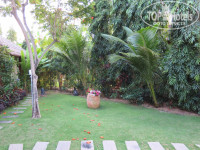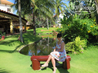 Ооочень тщательный уход за территорией отеля. Территория зеленая, везде растут цветы, пальмы, деревья цветущие. Каждое утро убирали опавшие цветы, подметали, поливали, выпалывали, подстригали и т.п. Везде стоят скамеечки, скульптурки забавные, есть качели, небольшой прудик. Муж каждое утро после завтрака кормил рыбок в нем :) При нас в нем один раз меняли воду, хотя он и до этого был не грязный.