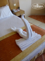 Мы летели metrojet, туроператор brisco. Претензий нет. По приезду в гостиницу заселили в течение 20 мин, без каких либо доплат, хотя мы приехали в 12. Номером остались довольны, он относительно был удален от главного корпуса, где находилась столовая, но близко к морю. В номере убирали каждый день, все чисто, причем это не зависело оставляли ли мы чаевые и шоколадки, или нет. Поменяли полотенца 1 или 2раза, белье не меняли. В номере мебель старая и обшарпанная, но мы были готовы к этому, это не испортило нашего впечатления. Единственное замечание и пожелание - поменяйте занавеску в ванной, она в черной плесени! Номер 3125!