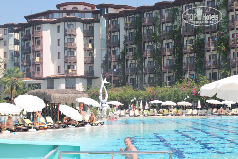 Отдыхали в сентябре 2014 года решила написать про этот замечательный отель.Большая ухоженная территория. Вежливый, очень доброжелательный персонал. Отличное разнообразное питание: всегда есть натуральное мясо, приличная рыба, раки, креветки; разнообразные сладости, в изобилие фрукты: арбуз, дыня не всегда зрелые), черешня, персики, киви, апельсины, груши. До пляжа не совсем близко, но идти не утомительно, много деревьев, прохлада от речки. В отеле все, как описано. Номер в бунгало чистый.