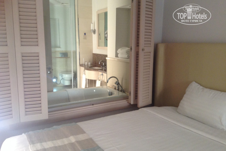 Встретили нас хорошо, разместили быстро, в течение получаса. Предложили прохладные напитки, от которых мы не отказались. Номера шале новые. В номере две раздельные кровати, можно разложить еще и диван, также присутствует плазма с русскими каналами, чайник, утюг, холодильник, кондиционер, сейф, фен, шампунь, мыло, гель для душа и т.п. всё присутствует.