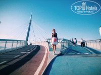 Милый отель, можно сказать на первой береговой линии... но в центре этого уютного городка. Персонал на рецепшене очень мил и приветлив! Номера чистые, уютные, прекрасный вид на море и невероятный пешеходный мост... Брали в отеле только завтраки-в принципе все стандартно. Цена качество полностью соответствуют.