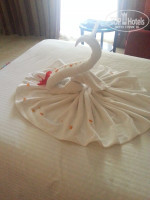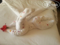 Первое о номере. Мебель конечно не новая, но хорошая, номер 5054 у нас был просторный и светлый на первом этаже с выходом к бассейну. В коридорах не очень чисто, есть места свежей шпаклевки, трещины в стенах замазывали. Но это не особо важно. Через 5-10 минут после заселения в номер, к нам пришел уборщик номера и спросил все ли нас устраивает. Оказалось не работает фен, через 5 минут пришел другой и все исправил. Потом позвонили с ресепшен и тоже спросили, все ли нас устраивает. Два русских канала, вполне хватало если было время в номере посидеть. Убирались 50/50, белье меняли, но и полотенца и простыни были в пятнах которые видимо уже не отстирываются. Отелю стоит поменять и простыни и пляжные полотенца, некоторые уже потрепанные!!!!!!! Убирали наш номер поздно примерно с 14:00 до 16:30. Через день оставляли по 1$, на уборку особо не влияло, только лебедя один раз сделали и зайца) Бутылку воды давали каждый день. В номере были электрический чайник, чай, кофе и сахар. При выселении приходит специальный человек, вешает на багаж бирки с номером вашего номера и сам увозит в камеру хранения, кстати полезная функция, самим таскать не надо) Снами одновременно приехала большая семья им нужно было два номера рядом т.к. с ними были маленькие дети, они сказали, что их заселили в очень плохие номера. Так что как кому повезет. Поэтому и отзывы разные)