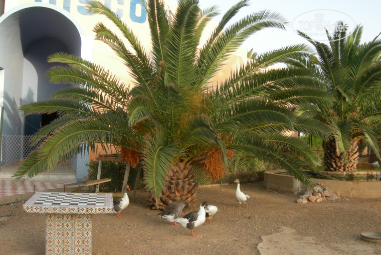Отдыхали с ребенком 5 лет в 2011 году. Ехали по рекомендации знакомой, работающей в турагенстве. Поездка была бюджетная, поэтому на хоромы мы не расчитывали. Отелем остались довольны! Приехали в 2 часа ночи, заселили быстро. Поселили сначала в эконом-номер (как и было оплачено) с видом на сад на 1 этаже - было сыровато, двуспальная кровать плюс раскладушка для ребенка. Утром попросили поменять номер, за небольшую плату (10$) дали номер Family на 4 этаже с видом на море, двуспальная кровать и полноценная отдельная кровать для ребенка. Питание разнообразное и вкусное, но для ребенка увы нет супов. Из супов был какой-то крем-суп, один раз взяли - дочке не понравился. Но и без жидкого, было что поесть и на наш вкус, и на вкус 5-летнего ребенка. Фруктов маловато, соки порошковые - докупали в магазинах. Номер скромненький, убирали каждый день, если оставишь 1 динар, то вообще будет супер-уборка. Русского никто не знает, по-английски мало кто говорит, только работники в отеле. В городе (Махдия) общались на смеси английского и французского. В город ходило оч. дешевое такси. Несколько раз катались в Махдию, на маяк, в медину и просто за сувенирами. Недалеко от отеля есть магазин с продуктами и сувенирами. Шикарный и огромный песчаный пляж. Отель стоит последний в ряду - дальше пустырь, идеальное место для утренних пробежек вдоль кромки моря и просто прогулок, если не очень солнце палит. Лежаки и зонтики бесплатные, перед входом на территорию все моют ноги от песка. Плаж убирают, хоть он и муниципальный. При отеле есть небольшая детская площадка и мини-зоопарк - верблюды, козы, овцы, черепашки, куры, голуби, гуси, павлины. Каждый день таскали хлеб из столовой и кормили живность с ребенком. Два бассейна - взрослый и детский, есть еще крытый, но мы не любители бассейнов. Русских не было, кроме двух скандальных мамашек с грудничками. Отличный бюджетный отель для непритязательных туристов!!!