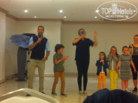 Что касается анимации-я считала,что приличная анимация есть только в Турции,ноя ошиблась,и в Греции она тоже есть,а конкретно в нашем отеле.Анимационная команда состояла из 5 человек-2 парня и 3 девушки,одна из которых очень хорошо говорит по-русски-Марина).С раннего утра и до позднего вечера аниматоры всегда были на территории отеля и предлагали различные развлекаловки для отдыхающих-аква-аэробика,водная гимнастика,водный футбол,дартс,футбол,йога и много-многое другое.Так же на территори отеля работает мини-клуб для детей,в котором постоянно находились два аниматора-Марина и Ариана,первые дни наш ребенок обходил этот клуб стороной,так как большинство детей-иностранцы,после того,как мы узнали,что Марина говорит на русском языке-ребенок из клуба не вылезал,даже пытался общаться с иностранными детьми на англ.языке).Каждый вечер с 20.30 до 21.30 был baby dance-под очень веселую музыку аниматоры показывали движения,а дети за ними повторяли,на протяжении 2ух недель,сын ежедневно плясал под эту музыку и ни ему ,ни нам это не надоело)все было очень весело и задорно.спасибо за это аниматорам).