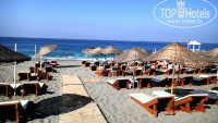 море через 30 метров ( тонель). достаточно лежаков и зонтиков. как у моря так и у бассейнов .