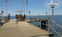 Минус отеля это пирс практически на весь пляж. Он заграждает вид на море. Лежать на нем-сгоришь на солнце, плюс ветер. Лежаки на пляже в тени (т.к не все было закрыто тканью) приходилось бронировать в 8 утра. Потом везде натянули защитную ткань, но как-то некачественно: полоска-тень, полоска-солнце.