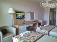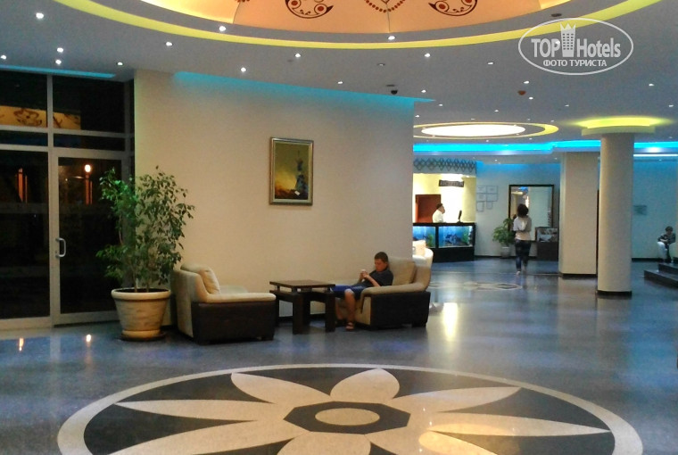 В отель мы приехали в 12 часов большой группой (около 20 человек). Первый этаж просторный и вполне симпатичный. На ресепшене русская женщина и несколько ребят - турок, которые вполне сносно понимают и даже отвечают по-русски, что сразу порадовало. Нам дали заполнить анкеты, надели браслеты и отправили на обед. Сразу после него мы все вернулись и уже получили карточки от номеров. Отдельно отмечу, что заселили нас даже раньше положенного срока и без всяких доплат (и даже намеков на них).