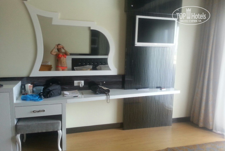 Отдыхали вдвоем с парнем, номер нам дали очень хороший. Все как на фото, большой, чистый, красивый и даже 3х местный, в номере была 1 двух спальная кровать и одна односпальная. Вид из номера на бассейн, территорию отеля. Номер на 1м этаже, wi-fi ловил в номере просто отлично, так же на всей территории отеля хороший сигнал.