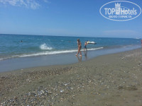 До моря 3 минуты, по пути так же продают фрукты по низким ценам, пляж чистый, но из за гальки вход в море не очень приятен.