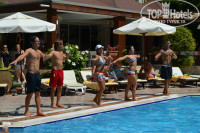 Отдыхала в Alara Park ResidenceHotel с 5-ти летним сыном и младшей сестрой 11 дней в конце августа - начале сентября 2014 года. Отзыв собралась написать только сейчас когда начала присматривать отель для очередного отпуска. Мы приехали в отель около 9 вечера, нас отправили на ужин, пока поужинали нам подготовили номер. Номер выдали прекрасный, в круглом корпусе с видом на бассейн и спа-центр, в номере все работало исправно, техника и мебель вполне достойная. Сразу скажу, что отель очень зеленый с хорошей территорией, много зеленых насаждений, пальм, цитрусовых деревьев, туй, экзотических кустарников. Туристов в сентябре было уже не много, поэтому нам было очень комфортно. Столиков в ресторанах и барах хватало всем отдыхающим, лежаки у бассейна всегда можно было найти, что касается лежаков на пляже их очень мало, поскольку полоса пляжа очень узкая, но зато в шаговой доступности от отеля. Рядом есть дикий пляж, мы ходили туда гулять, на скалистом берегу в кратерах можно увидеть рыбок и крабиков. Если Вы ждете отдыха на широком песчаном пляже, этот отель скорее всего не для Вас. Мы на пляж ходили только по утрам на часочек, все остальное время проводили у бассейна, ребенку там было веселее (водные горки, игры с детишками), да и мы с сестрой с удовольствием принимали участие во всех развлекательных мероприятиях (аквааэробика, игры и танцы у бассейна). Анимационная команда в 2015 году была чудесная, и детская и взрослая анимация была на высоте. Сынишка дважды в день с удовольствием бегал в мини-клуб, они учили песенки, пекли пиццу, раскрашивали футболки, ездили на ферму где разводят пони, искали сокровища. Во взрослую анимацию входили: игры у бассейна, вечернее шоу в амфитеатре, аквааэробика, боча, минигольф, водное поло,степ-аэробика, волейбол, и всеми любимый в этом отеле дартс на желание)) Спасибо аниматорам, они знали всех отдыхающих поименно, много общались с туристами, создавали настроение! В отеле основной ресторан, лобби-бар, бар на террасе, бар у бассейна, бар на пляже, 3 ресторана ala cart, еще видели диско-бар в подвальчике, но не знаю работал он или нет, поскольку после завершения взрослой анимации в 23 часа ребенок уже уставал и мы шли отдыхать. Питание в основном ресторане и снек-барах мне понравилось, взрослые всегда найдут чем полакомиться, хороший выбор и горячих блюд, и салатов, и закусок, и овощей-фруктов, и сладостей, но для ребенка было тяжеловато что-то подобрать: супов к каким он привык не было, любимых котлет, плова, пельменей тоже, но это ведь Турция, здесь другая кухня, а он у меня привередлив в питании, другие детишки ели все. Что касается ala cart - мы ходили в итальянский, нам не понравились предложенные блюда. Цезарь был с квашенной пекинской капустой, пицца была вкусная, но очень острая - турецкая, но ничего, макароны с курицей совсем обычные - как в столовой, а вот десерт изумительный тирамису. Поесть в отеле можно всегда, голодными точно не останетесь. В 10-ти минутах ходьбы от отеля (вправо по трассе) располагается рынок, здесь есть и сладости, и фрукты, и сувениры, и игрушки, и сумки, обувь, одежда. Купили все там, даже не пришлось тащить ребенка на базар в Аланью, очень удобно. Ездили на экскурсию на пиратской яхте Барбосса - очень круто! Всем малышам раскрасили мордашки под пиратов, они проходили квесты, высаживались на песчаном острове с удивительно чисты