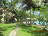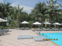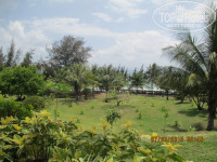 Отдыхали семьей в марте 2015 г. 11 дней от Пегаса. Если коротко, то отель- очень уединенный, спокойный, зеленый, для непритязательного к еде туриста. Очень порадовало маленькое количество номеров, отсутствие людей как на пляже, так и в бассейне. Складывалось ощущение, что мы почти одни отдыхаем. Жили на первом этаже основного здания. Доставляло удовольствие, перешагнув небольшой балкончик, босиком и в одном купальнике шагать на пляж и также возвращаться. Пляж очень хорош, пологий заход, что давало возможность плавать при волне. Водичка теплая. Медуз не было. Попадались морские звезды, видимо выносило штормом. Если бы не проплывающие иногда пакеты (единственное, что напрягало), то пляжу цены бы не было! В номере все есть, все работало, убирали каждый день и весьма хорошо, принадлежности (гель для душа, шампунь, мыло) пополняли. Сушилки на балконе нет. Брала веревку и прищепки - пригодилось, так как на балконе все конструкции из темного дерева, белое белье не посушишь. Ещё нюанс- для стирки белья раковина удобная, с пробкой. Порошок брала из дома. В отельном магазинчике не заметила. Там есть шампуни, гигиена для женщин, крема. Брали доп.кровать, но можно было и не брать, так как она встала под кондиционером. В итоге, ребенок 10 лет спал на одной кровати, а мы с мужем вполне поместились на второй. Только не понравились нам подушки, очень жесткие. Выкручивались из подручных средств и думок. Но это кому как. Брали в отеле завтраки и ужины. Питание особенное, не похожее на турецкие и егепетские развалы еды. Но нам нравилось, что отсутствовало искушение переесть и набрать лишнего. Голодные не уходили! Завтраки обильные, с супчиком, блинчиками, омлетом и прекрасным йогуртом. Кто по натуре - жаворонок, тот это оценит. Так как мы вставали рано, успевали с утреца наплаваться в прекрасном теплом море, а кто-то и сделать пробежку, то супчик фо был в самый раз! Помимо этого были разные мясные подливы, курица, рис в разных вариациях, обжаренная рыба, картошка, тушеные овощи, как гарнир или с мясом, рисовые блинчики, рисовая лапша, макароны. Свежие овощи, по 3 вида фруктов: бананчики, зеленые, но очень сладкие, такие же зеленые и вкусные мандарины, арбуз , ананас, папайя, маракуйя. Но фрукты в ресторане мы почти не ели, так как практически за бесценок или в качестве презента получали их в кафе на улице "У Тэна". В отеле на завтрак всегда был свежевыжатый сок. Совсем немного присутствовала как на завтрак, так и на ужин выпечка. Нас это искренне радовало! Вечером выбор был чуть меньше. Но наедаться на ночь- не наша привычка. Вечером напитки платные. Мы заказывали иногда вино Далат, чаще имбирный чай. На обед, если не уезжали на экскурсии, ходили в кафешки к Тэну или Сане. Вкусно готовят, все аккуратно, ставят на стол, в качестве презента, овощной салат, фрукты, свежеотжатый сок, орешки. Ели у них только морепродукты, жаренные на гриле. Рядом в магазинчике покупали газ.воду (баром в номере не пользовались). Так как в отеле отсутствует анимация и вечерние развлечения, то об этом нужно заранее позаботится. В ближайшей округе магазинчиков, что бы купить бамбинтон, мяч, доску для плавания и т.п. нет. А очень хотелось поиграть на газончиках, порезвится на волнах. Брали на прокат, у бассейна, принадлежности для большого тенниса. До обеда- бесплатно, потом платно. Площадка хорошая, но на солнцепеке. 