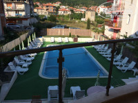 Отдыхали семьей -2 взрослых и ребенок 4лет. До моря 15 мин,рядом кафе,ресторанчики,магазин спар,парк. Номер был двухкомнатный с видом на бассеин. Все работало,мебель новая,кондиционер в спальне,на кухне-плита,мин набор посуды,но почти не готовили-очень недорого кушать в городе;сан узел не удобный. Уборка нормальная. В отеле есть кафе-цены нормальные,очень вкусно. Спокойный,чистый отель. Остались довольны.